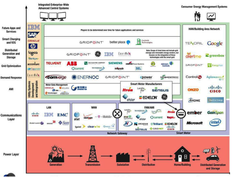 Le paysage économique de la « Smart Grid » commence à se dessiner et des acteurs de divers horizons et de diverses tailles se positionnent pour offrir leurs services et produits.
